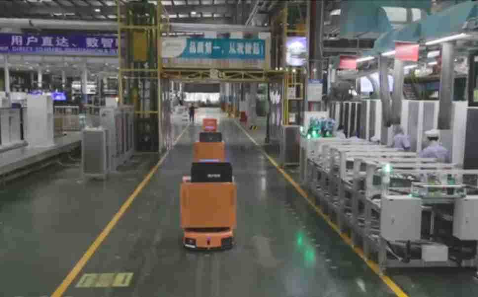 为车载冰箱物流配送打造的智能解决方案,,包含产中物流通过潜伏举升AMR搬运至线边,,产后成品物流智能仓储,,流程包含产中物流智能齐套入库,,,,线边安灯叫料AMR智能配送至线边,,成品入库、、、、出库,,,通过无人堆高车机器人,,智能仓储管理替代人工作业管理,,,,实现更高存储、、、更高效率、、、更具柔性化的解决方案。。。